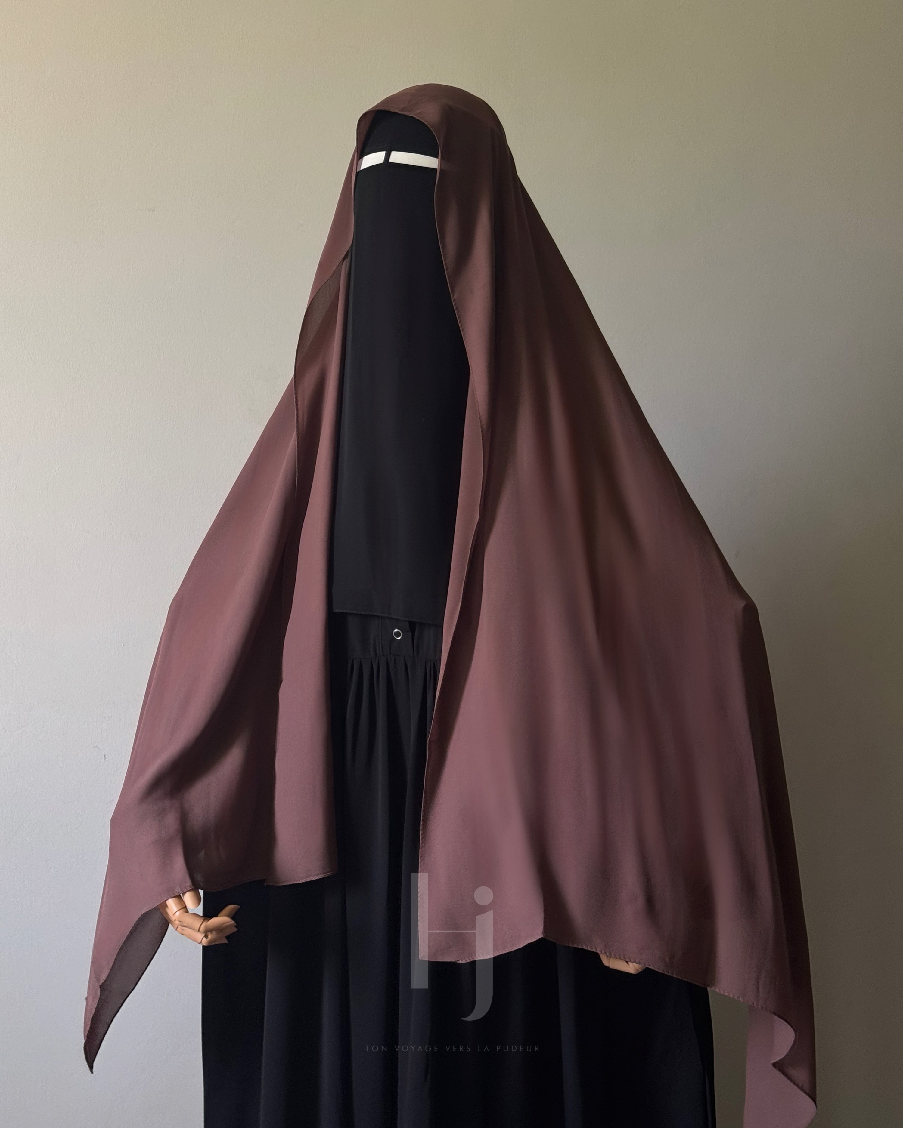 Combine ce hijab avec notre tunique camélia, notre jupe cloche et notre niqab mousseline : )