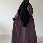 La coupe évasée de cette Abaya permet une aisance totale en toutes circonstances. Nous sommes ravis de l’inclure parmi nos créations, assortie à son khimar Oummi, dans le but de simplifier la vie des mamans.